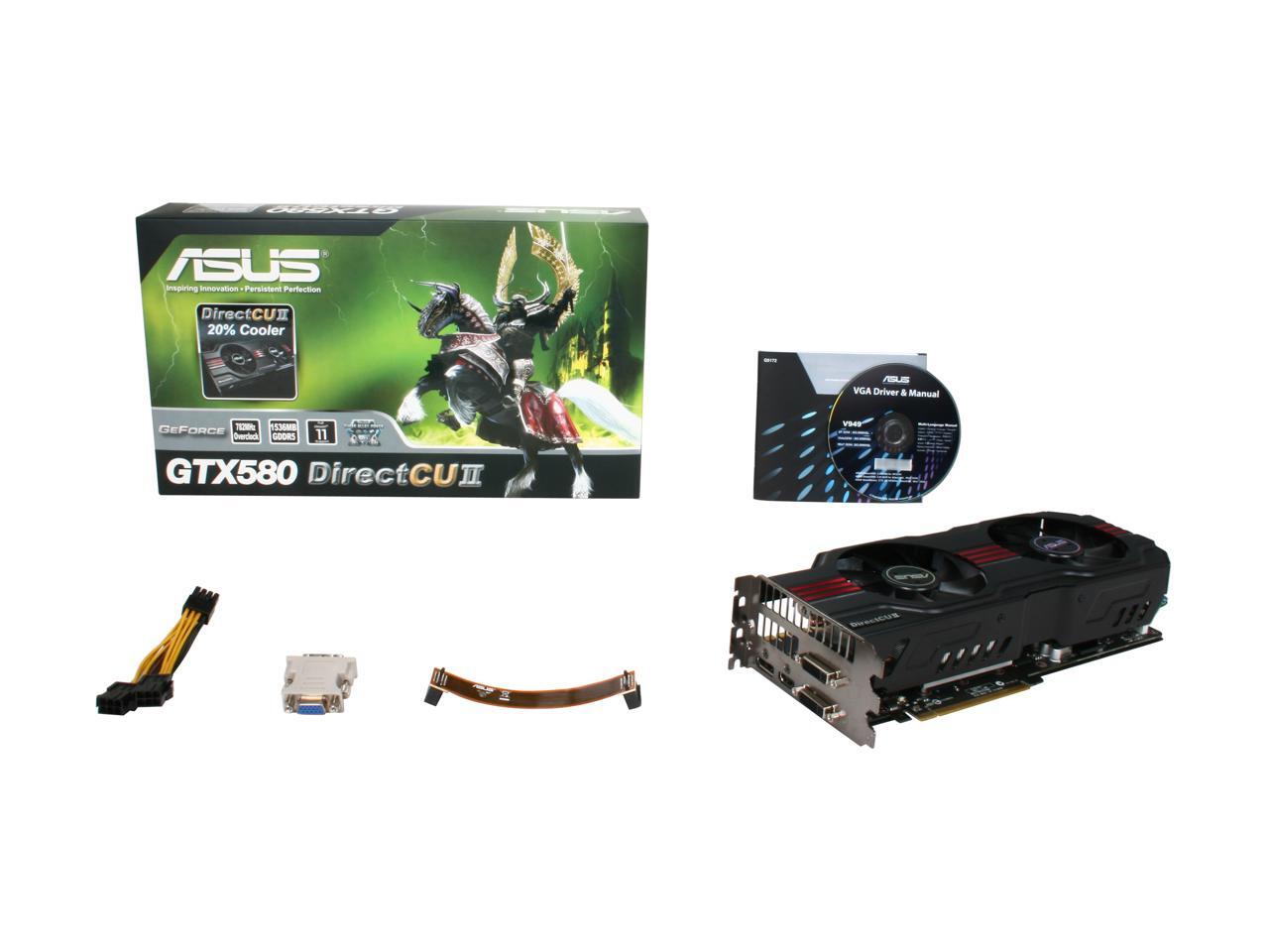 ASUS GTX580 DirectCU II graphics card introduces exclusive DirectCU II technology which uses copper heat pipes directly contacting the GPU and twin 100mm fans for a massive 600% increase in airflow compared to reference. It also includes ASUS Super Alloy Power technology, which uses a unique alloy formula in power components such as chokes, capacitors, POSCAPs and MOSFETs to ensure a 15% performance boost, 35°C cooler operation and 2.5 times longer lifespan. In addition, ASUS overvolting utility Voltage Tweak allows gamers to realize the full potential of their PC’s graphics performance with an easy to use and intuitive user interface. As you’ve come to expect from a GeForce GTX GPU, ASUS GTX580 DirectCU II packs support for all the premium GTX gaming technologies such as NVIDIA 3D Vision Surround, PhysX, and SLI to offer the ultimate in gaming realism.