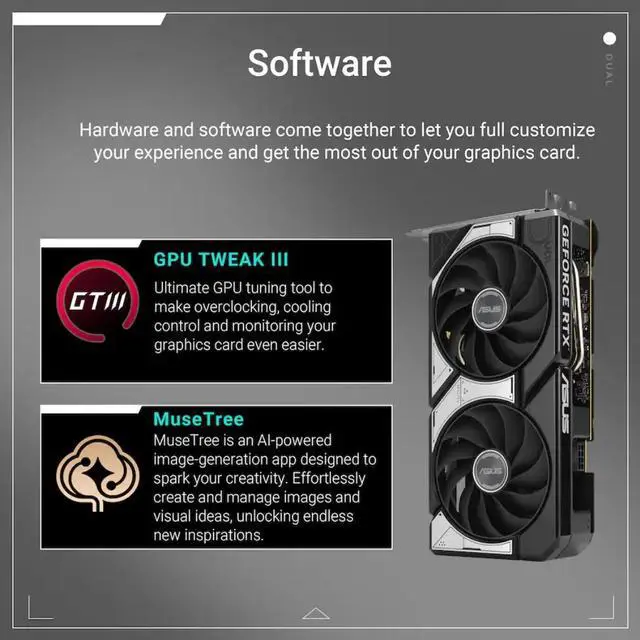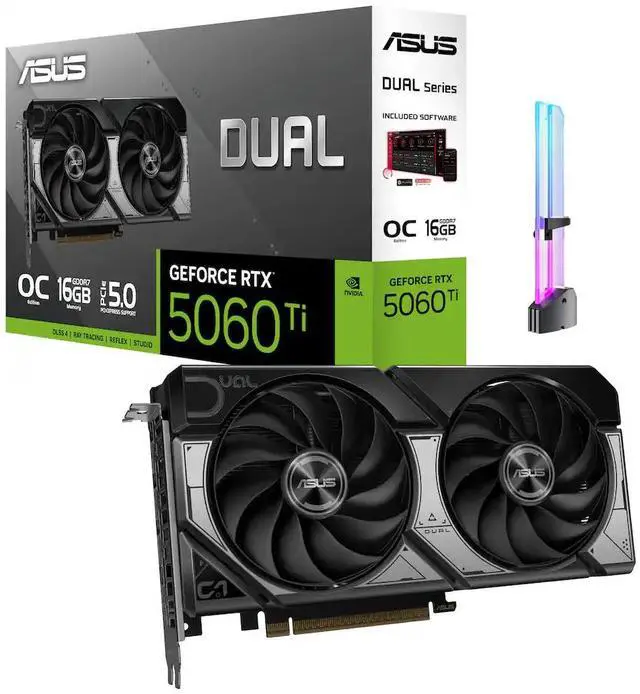 ASUS Dual GeForce RTX 5060 Ti OC 16GB GDDR7 is designed for modern gaming and creator workloads, from competitive gaming to 4K gaming, plus AI creation, local AI, video editing, 3D rendering, and streaming. This listing comes with GPU Holder to help support your GPU and keep your PC build clean.