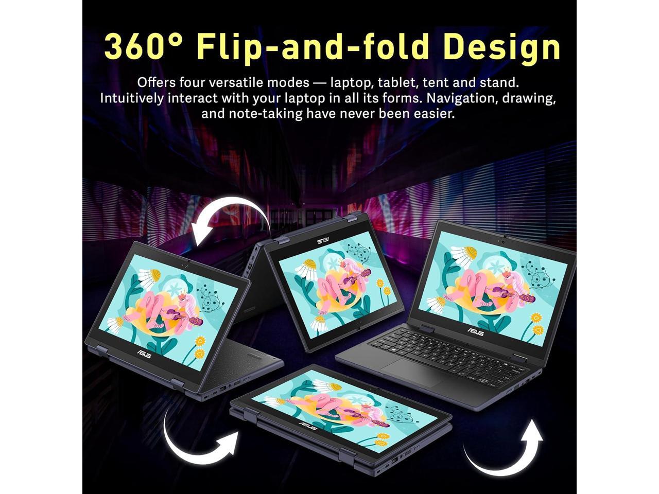 ASUS BR1102FGA 11.6" 2-in-1 Rugged & Spill Resistant Touchscreen Laptop, Intel Celeron N100, 4GB RAM, 288GB Storage(128GB SSD+160GB Docking Station Set), UHD Graphics, WiFi 6, Webcam, Win 11 Pro, Gray