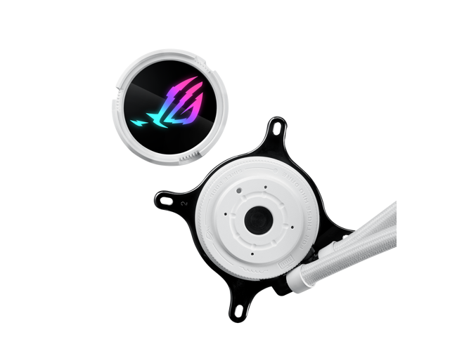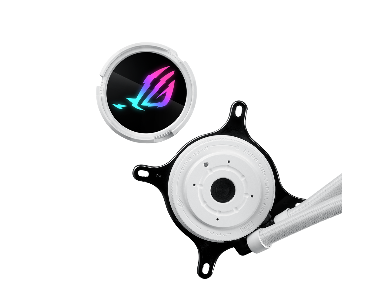 - New water block with 360° rotatable ROG logo and 10+ custom Aura lighting effects