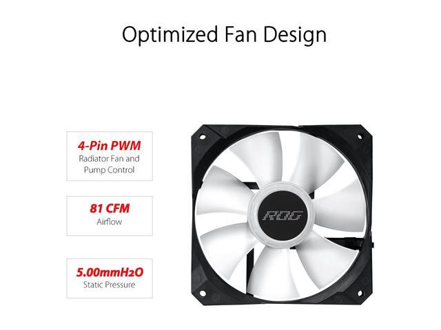 - ROG-designed ARGB radiator fans for optimized airflow and static pressure