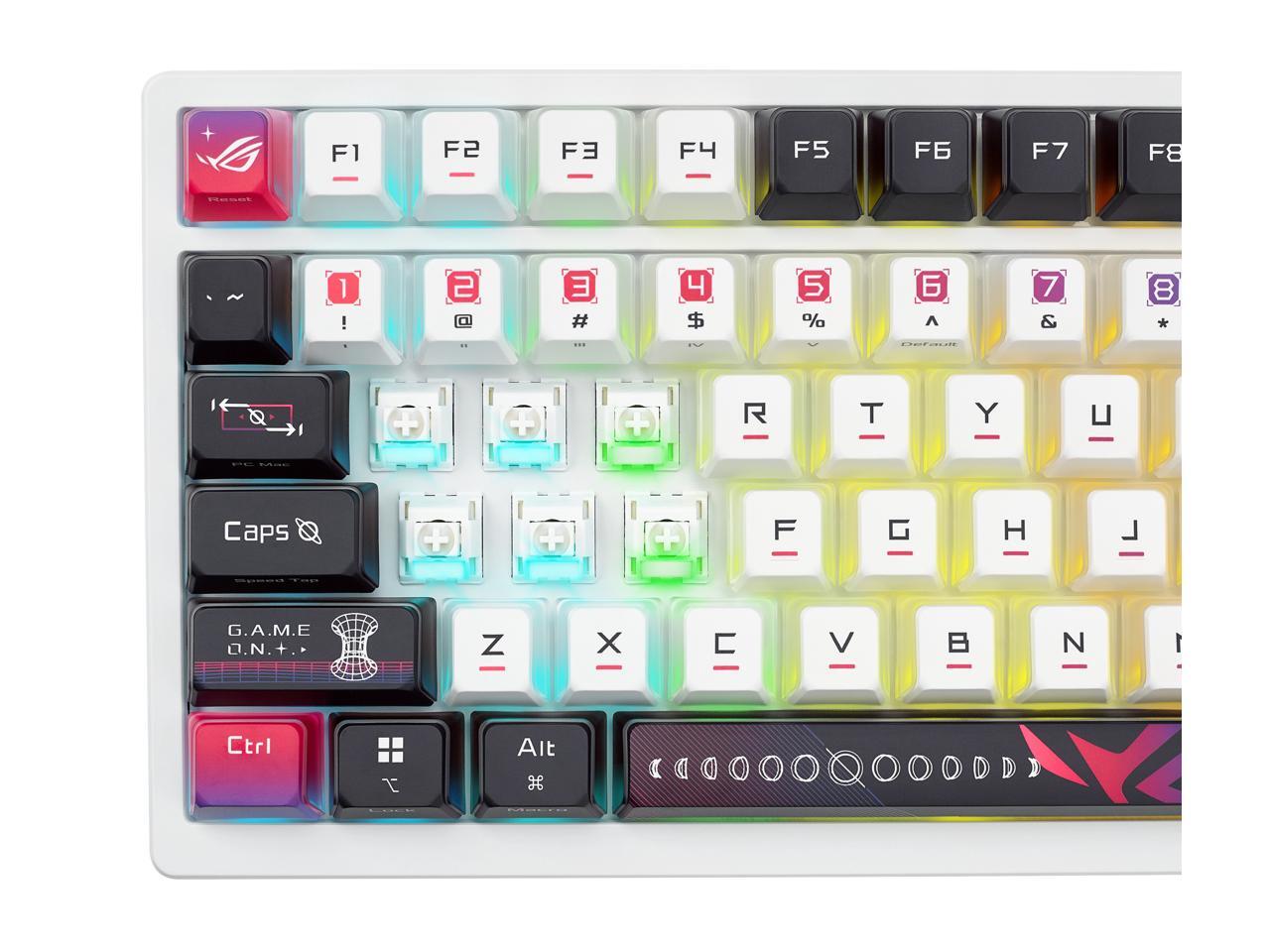 - Stellar-themed ROG keycaps: Special dye-sublimated keycaps are translucent on three sides to allow RGB lighting to pass through for a striking aesthetic