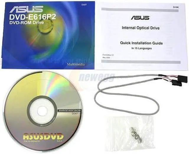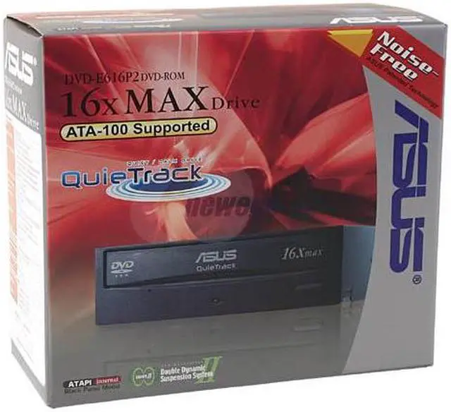 | Features | High-Speed DAE & VCD Data Extraction Compatible with Windows 98SE/2000/ME/XP, DOS 6.xx, Linux Vertical/ Horizontal Mounting Available Full Accessibility and Playability: ASUS DVD-E616P2 provides leading-edge multimedia experience with fabulous playback capacities that allows users to access all CDs, DVD-R/RW/ROM, DVD+R/RW and DVD-Video. DDSSII – Double Dynamic Suspension System. Superior Stability with Low Vibration Mechanism: Reduced vibration on traverse & drive case; resonance frequency control; reduced vibration noise; enhanced readability & playability AFFM (Airflow Field Modification) AFFM is designed to change the uneven airflow field inside the drive because even pressure distribution leads to quieter and more stable operation. |