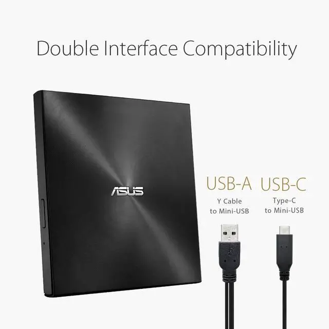 ASUS ZenDrive U9M is an ultra-slim external DVD Writer which supports USB Type-C and Type-A interfaces, provides two cables to allow data transmission including PC and Mac. Its sophisticated Zen-inspired design with concentric-circle hairline finish demonstrated the aesthetics of technology.