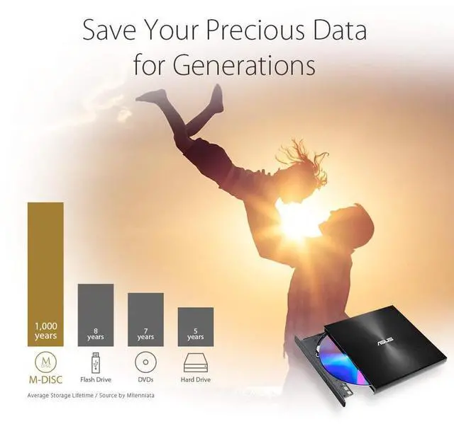 ZenDrive U9M supports M-DISC, a storage burning technology engraves recorded data into a patented rock-like layer that is resistant to extreme conditions, allowing you to save your lifetime memories and important data for up to 1,000 years.