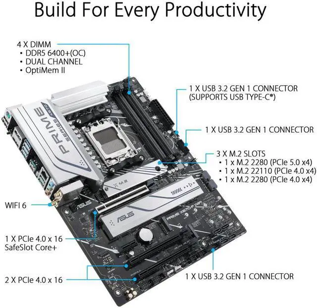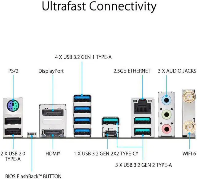 Ultrafast connectivity: Wi-Fi 6, M. 2 PCIe 5.0, Realtek 2.5G b Ethernet, USB 3.2 Gen 2x2 Type-C, front panel USB 3.2 Gen 1 Type-C, USB4 support.