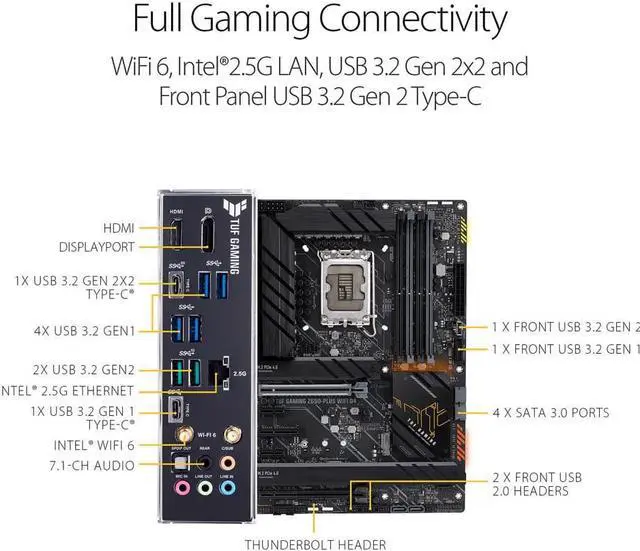 Ultra Fast Gaming Networking: WiFi 6 AX201 ( 802.11 ax), Intel I225-V 2.5G b LAN, TUF LANGuard and TurboLAN technology