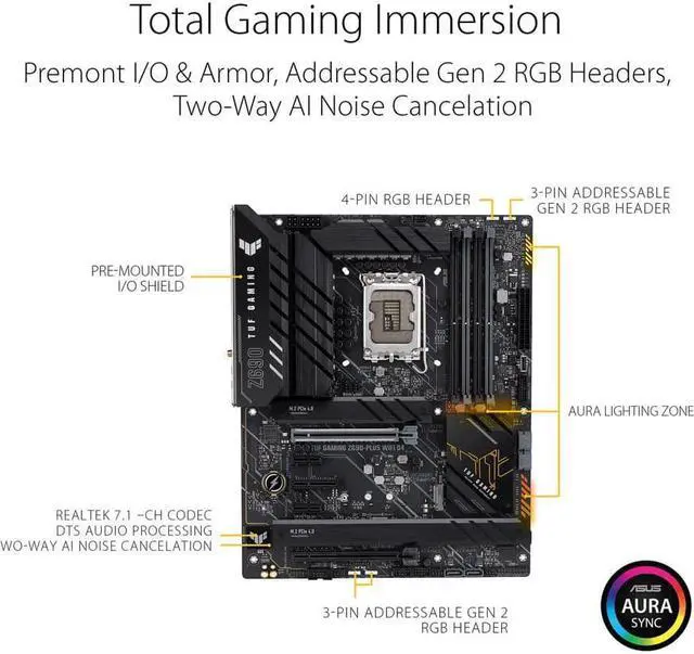 New TUF Gaming Aesthetics: New ID design, Synchronizable LED effects across a vast portfolio of compatible PC gear, including addressable RGB strips with Aura Sync