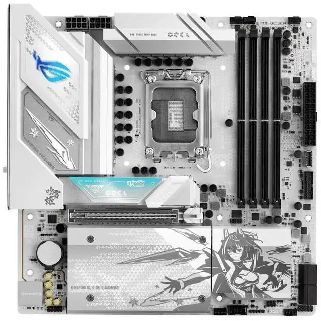 Platform: Supports AMD Ryzen 7000/8000/9000 series processors. Features compact Snow Edition design with white accents.