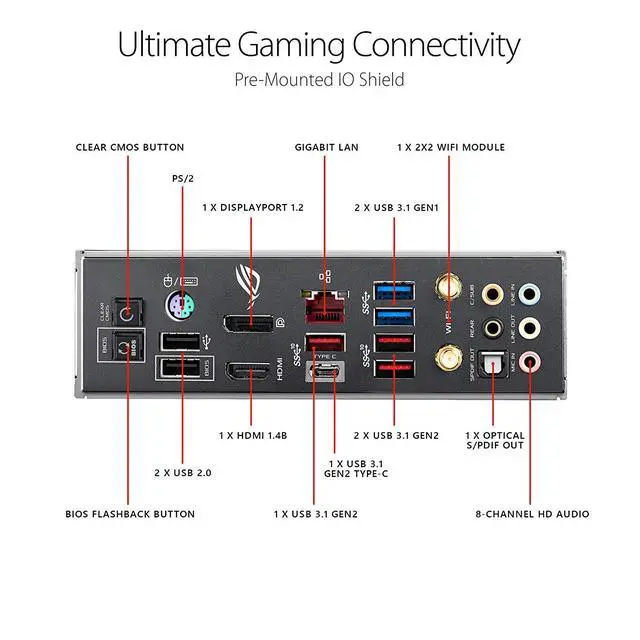 - Pre-mounted I/O shield ensures streamlined installation and represents ROG’s attention to detail and quality