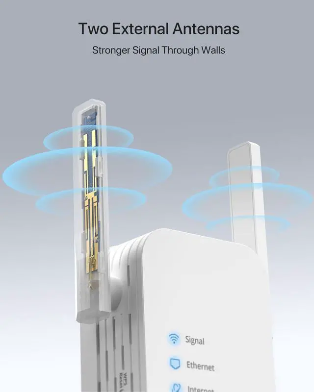 Press the WPS button on this adapter for 1 second. After the extended network appears, please wait approximately 2 minutes for the adapter to fully connect to your WiFi router. If the Signal LED light does not turn solid blue or orange, reset the adapter and try WEB UI method to set it up again.