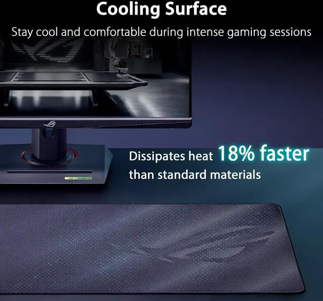 The ROG Sheath II XXL features a cooling fabric that dissipates heat 18% faster than standard materials, helping you stay cool even during intense gaming sessions. This innovative surface not only keeps temperatures down but also ensures comfort and consistency for long hours of play.