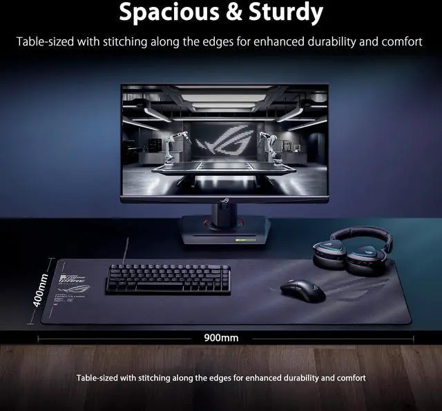 Measuring 900 x 400 mm, the ROG Sheath II XXL provides plenty of room for your laptop, keyboard, mouse and other gaming accessories, while protecting your desk from scratches.
