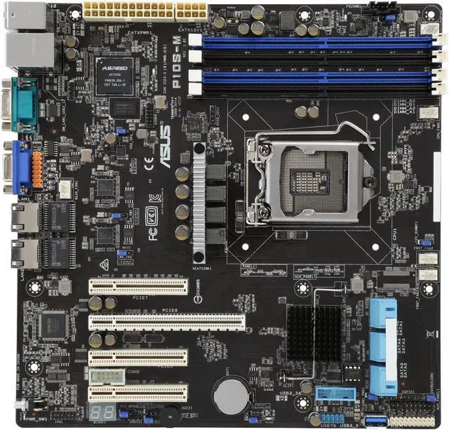 Asus P10S-M Server Motherboard. Brand New. . The Asus P10S-M is a LGA 1151 Micro ATX Motherboard from ASUS, is a Greenlow platform serverboard based on the Intel C232 chipset, LGA 1151 socket, and a 9.6 x 9.6" Micro ATX form factor that can be integrated into short-depth chassis to help increase rack computer density. It supports Intel Xeon E3-1200 v5, Core i3, Pentium, and Celeron processors, as well as Windows and Linux operating systems.The P10S-M has four UDIMM slots, each of which supports a maximum of 16GB of ECC and non-ECC 2133 MHz DDR4 memory, for a total of 64GB.. . The serverboard also has a total of 6 x SATA III 6 Gb/s ports, 1 x PCIe x16 (Gen3 x8 link) slot, 1 x PCIe x8 (Gen3 x8 link), 2 x PCIe x8 (Gen3 x4 link) slots, 2 x USB 3.0 Type-A ports, 2 x USB 2.0 Type-A ports, 1 x Serial port, and 1 x PS/2 keyboard/mouse port. Network connectivity is achieved using 2 x Intel I210AT Gigabit Ethernet LAN ports, as well as an Mgmt LAN port.. . P10S-M