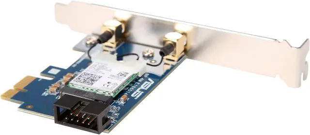 ASUS PCE-AC58BT Wireless Adapter IEEE 802.11 a/b/g/n/ac PCI Express 802.11a: 6,9,12,18,24,36,48,54 Mbps 802.11b: 1, 2, 5.5, 11 Mbps 802.11g: 6,9,12,18,24,36,48,54 Mbps 802.11n: up to 300 Mbps 802.11ac: up to 1733 Mbps Wireless Data Rates