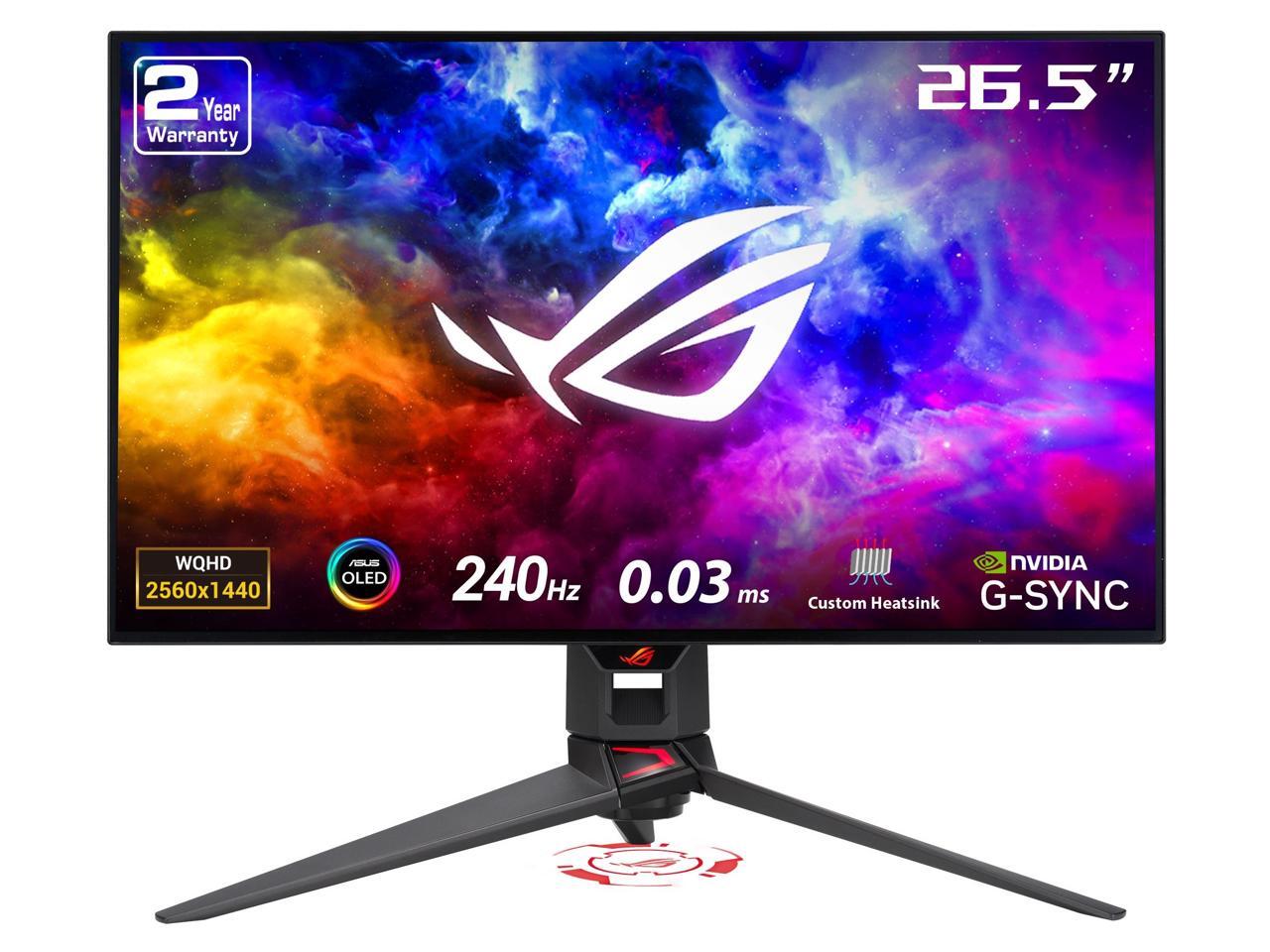 ASUS 27" 240 Hz OLED WQHD gaming monitor 0.03ms (Gray to Gray) FreeSync Premium & G-Sync Compatible 2560 x 1440 (2K) Anti-glare micro-texture coating, 99% DCI-P3,True 10-bit, Flat Panel PG27AQDM