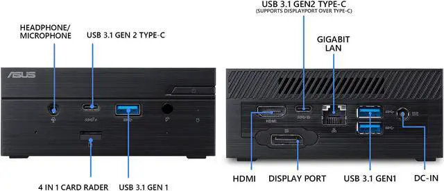 ASUS Desktop Computer PN62S-B3463ZC0 Intel Core i3-10110U 4GB DDR4 256GB PCIe SSD Intel UHD Graphics Windows 10 Pro 64-bit