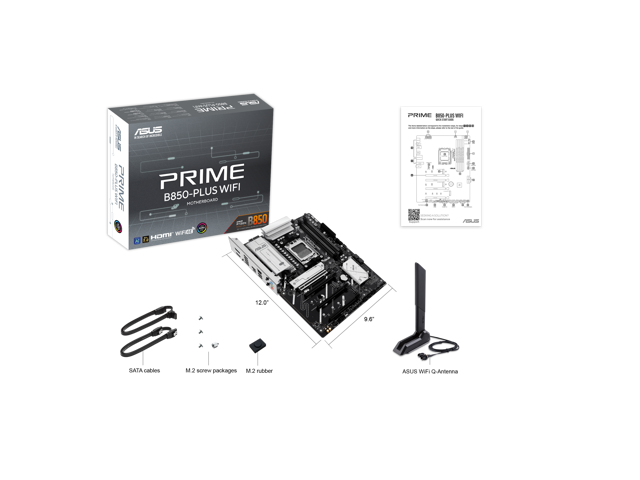 ASUS PRIME B850-PLUS WIFI AMD AM5 AMD B850 ATX motherboard, DDR5, PCIe 5.0 Ready, 3x M.2, Wi-Fi 6E, 2.5Gb LAN, DisplayPort, HDMI, USB 10Gbps Type-A & Type-C, BIOS FlashBack, Aura Sync, AI Advisor