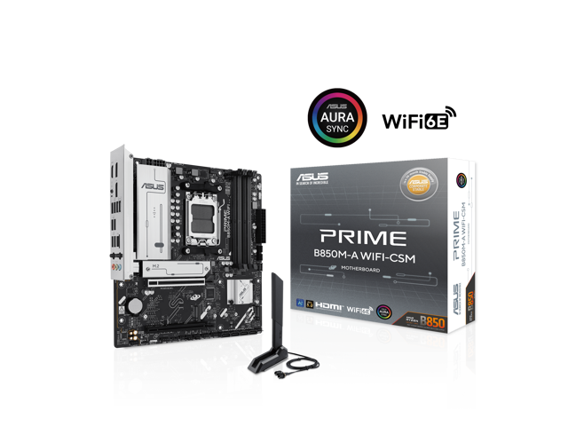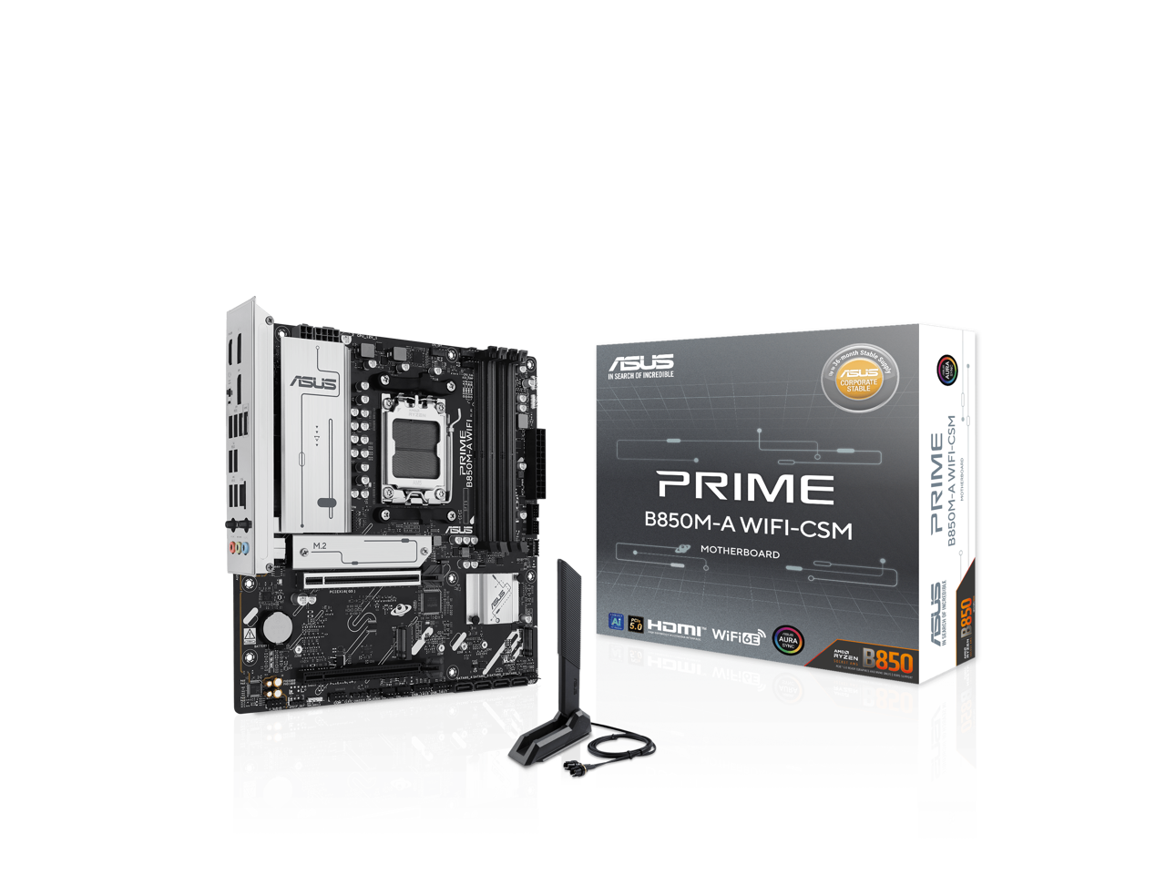 ASUS PRIME B850M-A WIFI-CSM AMD AM5 B850 mATX motherboard, DDR5, PCIe 5.0 Ready, 3x M.2, Wi-Fi 6E, 2.5Gb LAN, DisplayPort, HDMI, USB Type-C, ASUS Control Center Express Remote IT Management