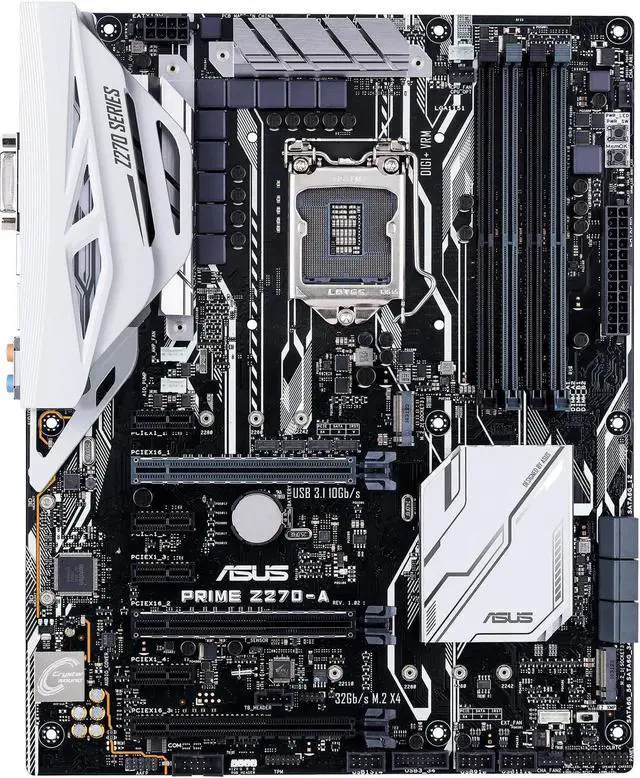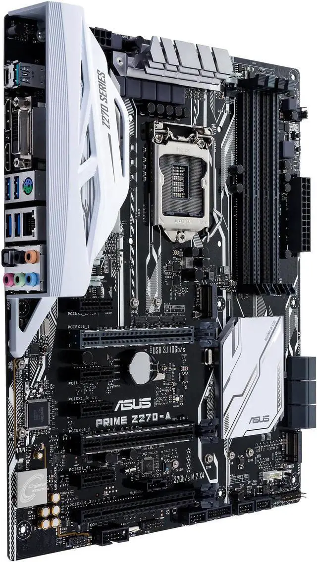 Ready for 7th generation Intel Core processors, the Prime Z270-A delivers maximum performance with customizable style. 5-Way Optimization provides intelligent auto-tuning and dynamic fan calibration, AURA Sync RGB lighting and 3D printing mounts customize your build, while Dual M. 2 and USB 3.1 Type-A/C deliver maximum transfer speeds.