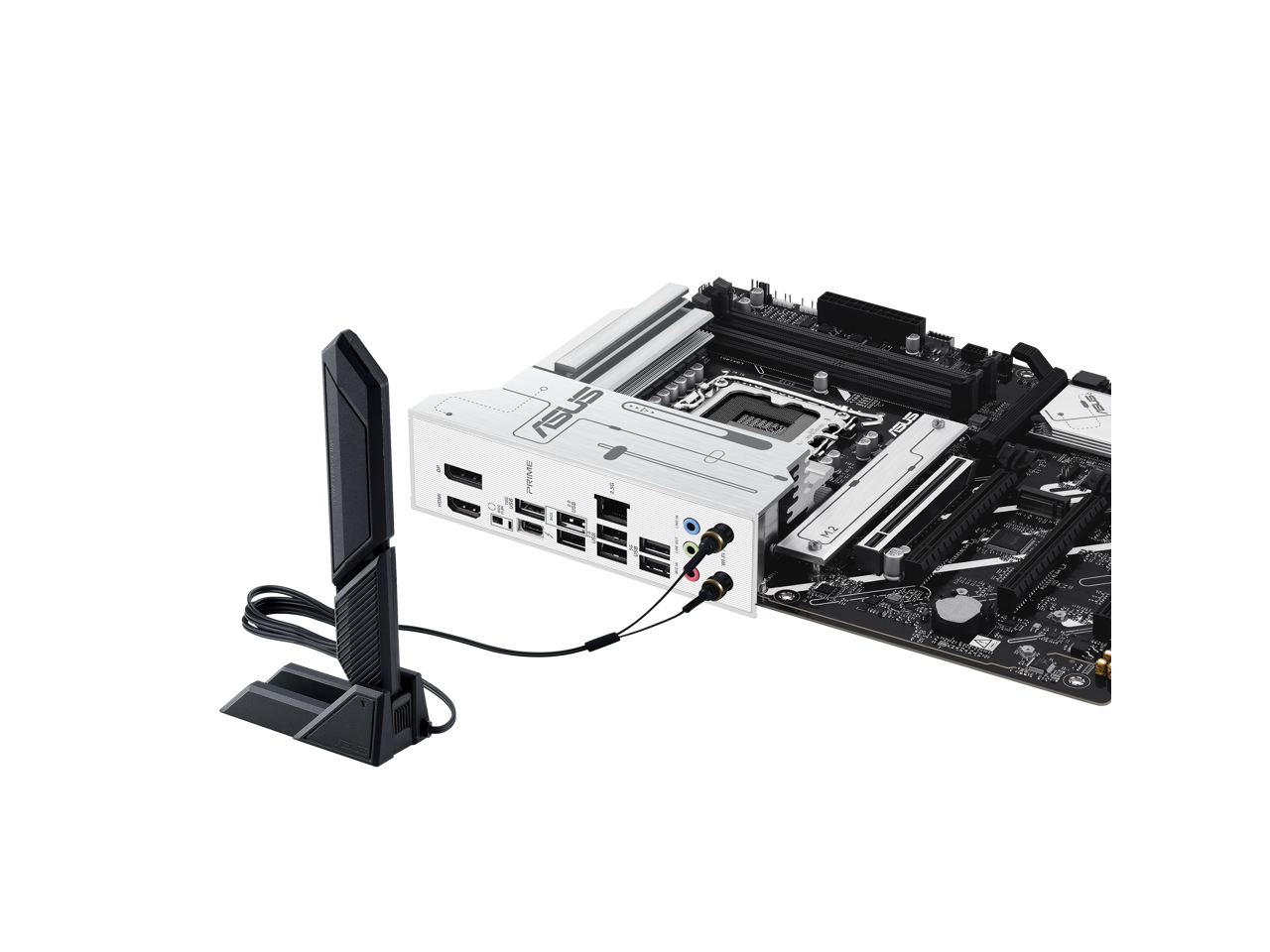 8. High-Performance Networking: On-board Wi-Fi 7 (802.11be) with ASUS WiFi Q-Antenna and Realtek 2.5 Gb Ethernet