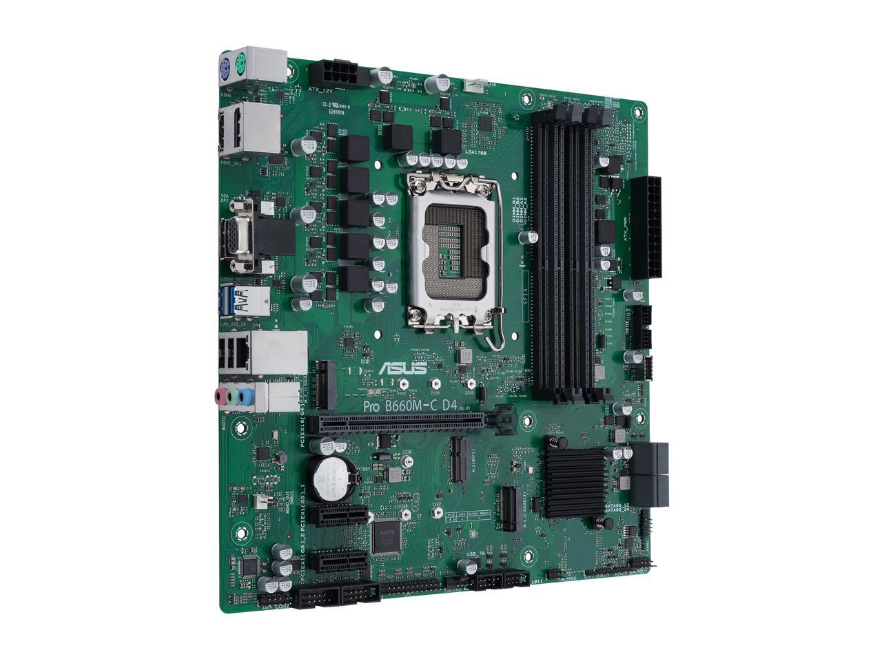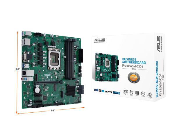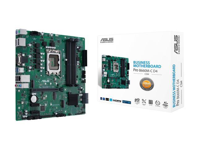 ASUS Pro B660M-C D4-CSM LGA 1700 (Intel 12th&13th Gen) Micro-ATX Commercial Motherboard (PCIe 4.0, DDR4, 2xM.2 slots, M.2 slot only (Key E), front USB 3.2 Gen 1 Type-C, TPM 2.0 IC onboard, Q-LED Core, Mono-out header(with Amp IC))