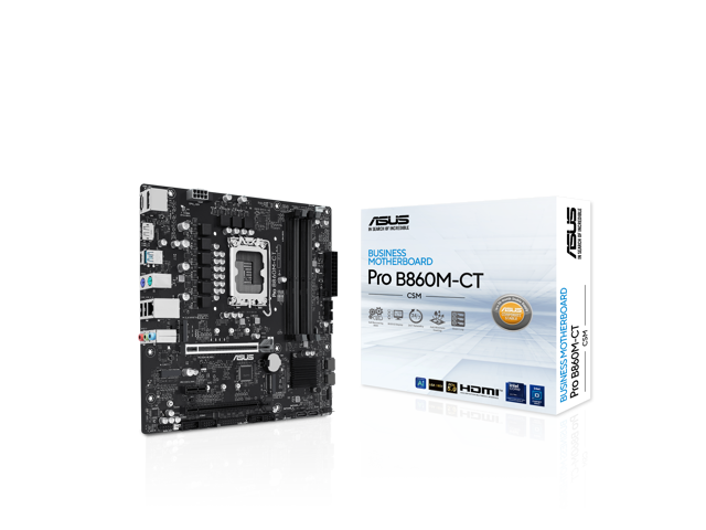 ASUS PRO B860M-CT-CSM Intel B860 (LGA 1851) mATX Motherboard, PCIe 5.0, DDR5, 2x M.2, Intel 1G LAN, 2x DP, HDMI, USB Type-C, TPM IC Onboard with Enhanced Security, Reliability and Manageability