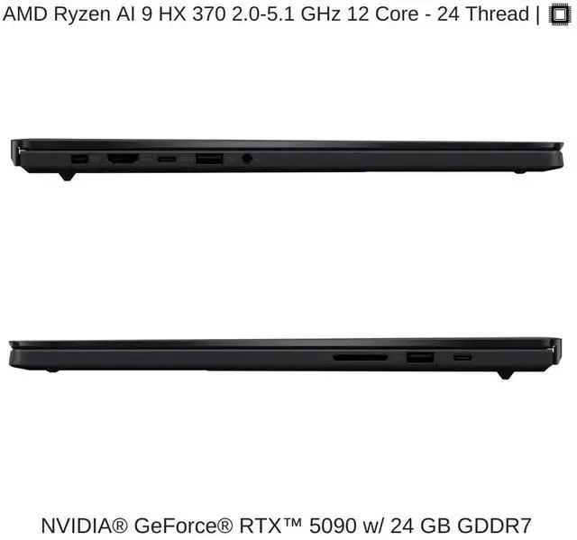 • AMD Ryzen AI 9 HX 370 12 Core - 24 Thread Processor, 2.0 GHz (Max Turbo Frequency 5.1 GHz), 36 MB Smart Cache with NVIDIA GeForce RTX 5090 w/ 24 GB GDDR7