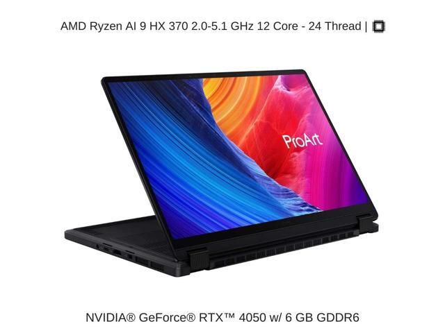 - AMD Ryzen AI 9 HX 370 12 Core - 24 Thread Processor, 2.0 GHz (Max Turbo Frequency 5.1 GHz), 36 MB Smart Cache with NVIDIA GeForce RTX 4050 w/ 6 GB GDDR6