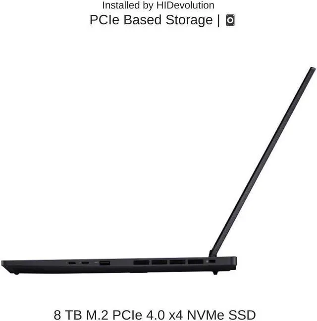 • HIDevolution installed PCIe based storage--8 TB (2 x 4 TB) M.2 PCIe 4.0 x4 NVMe SSD--ensures that you experience the fastest boot up & load times