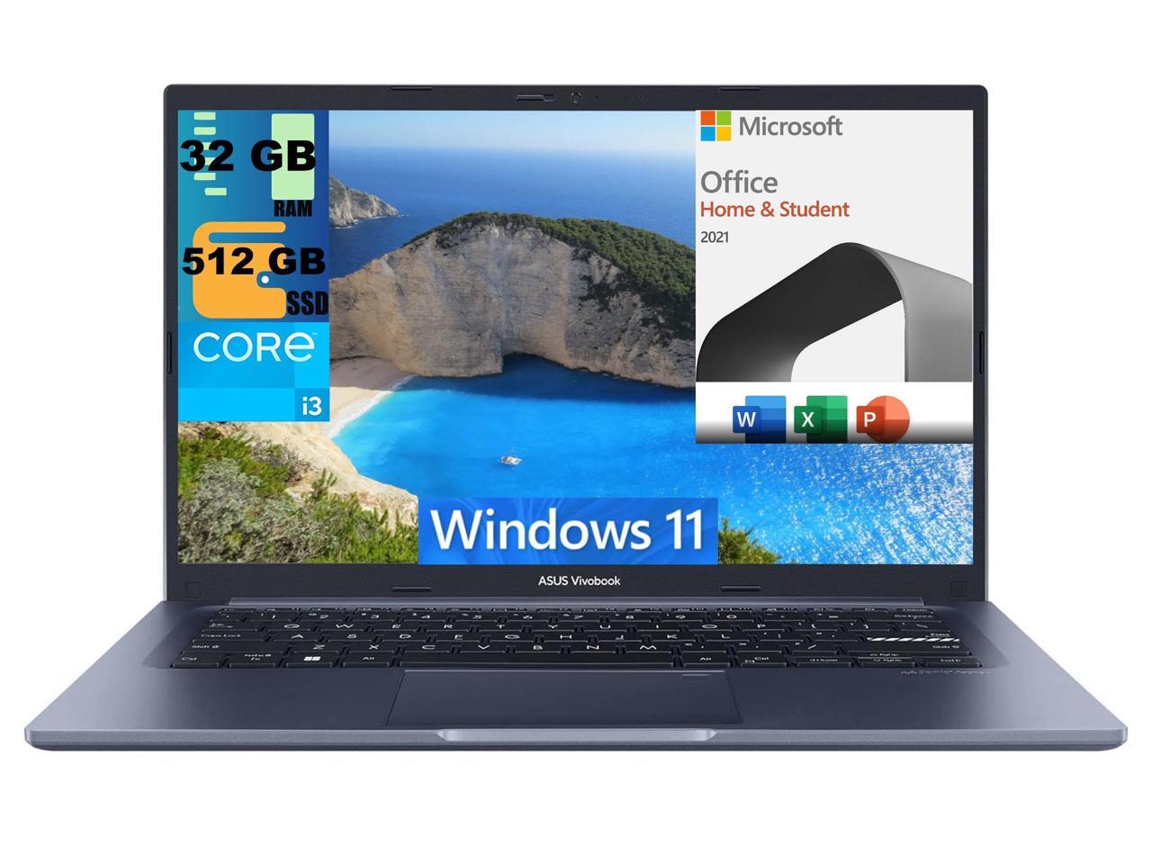 ASUS VivoBook 14 Slim Laptop, 14" FHD Display, Intel Core i3-1215U 6 cores Processor, Intel UHD Graphics, 32GB DDR4 512GB PCIe SSD, Fingerprint Sensor, Windows 11,Microsoft Office License