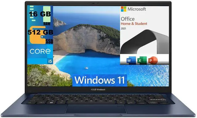 ASUS Vivobook 14 Laptop, 14" FHD (1920 x 1080) Display, Intel Core i5-1235U 6 Cores Processor, Iris Xe Graphics, 16GB DDR4 512GB PCIe SSD, Webcam, Windows 11,Microsoft Office License