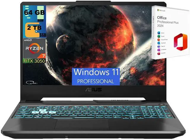 ASUS TUF A15 Gaming Laptop, 15.6" FHD 144Hz, AMD Ryzen 7 7435HS 8 cores Processor, NVIDIA GeForce RTX 3050 4GB Graphic, 64GB DDR5 2TB PCIe SSD, Backlit Keyboard, Windows 11 Pro ,Office 2024 License