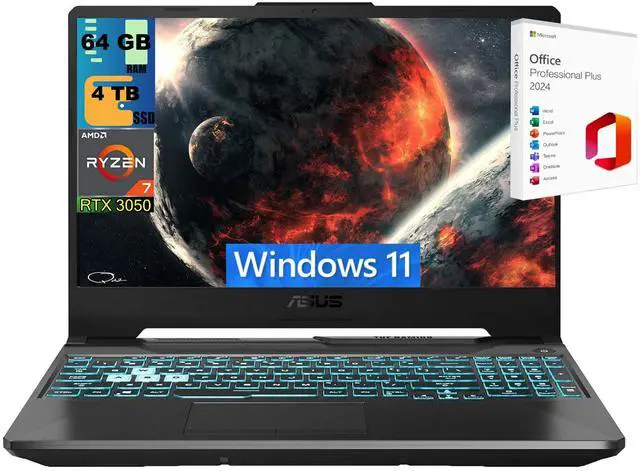 ASUS TUF A15 Gaming Laptop, 15.6" FHD 144Hz, AMD Ryzen 7 7435HS 8 cores Processor, NVIDIA GeForce RTX 3050 4GB Graphic, 64GB DDR5 4TB PCIe SSD, Backlit Keyboard, Windows 11 ,Office 2024 License