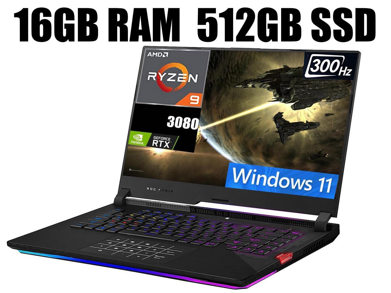 ASUS ROG Strix 15 Gaming Laptop, 15.6" 300Hz FHD Display, AMD Ryzen 9 5900HX 8 cores Processor, NVIDIA GeForce RTX 3080 8GB GDDR6, RGB Keyboard, 16GB DDR4 512GB PCIe SSD, Windows 11