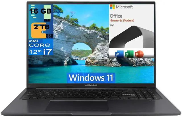 ASUS Vivobook 16 Laptop, 16" WUXGA (1920 X 1200) Display, Intel Core i7-1255U 10 Cores Processor, Intel Iris Xe Graphics, 16GB DDR4 2TB PCIe SSD, Webcam, Wi-Fi, Windows 11,Microsoft Office License