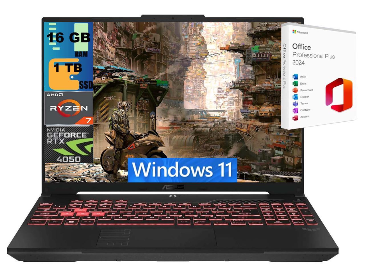 ASUS TUF A16 Gaming Laptop, 16" Full HD+ 144Hz Display, AMD Ryzen 7 7445HS 6 Cores Processor, NVIDIA GeForce RTX 4050 6 GB, 16GB DDR5 1TB PCIe SSD, Backlit KB, Windows 11 ,Office 2024 License