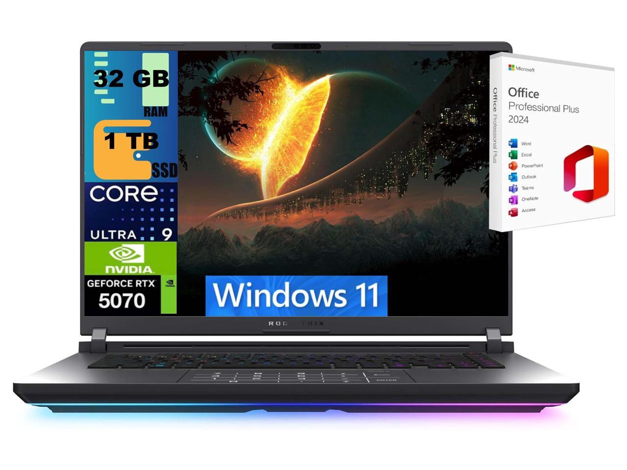 ASUS ROG Strix G16 Gaming Laptop, 16" 2.5K 240Hz, Intel Core Ultra 9 275HX 24 cores Processor, NVIDIA GeForce RTX 5070 8 GB, 32GB DDR5 1TB PCIe SSD, Backlit KB, Windows 11 ,Office 2024 License