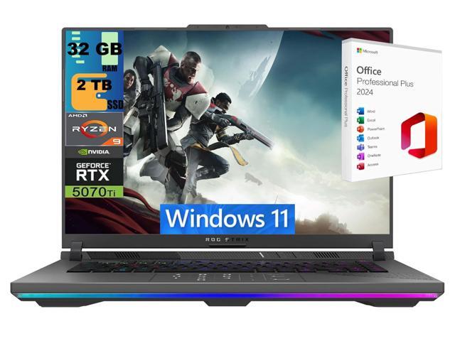 ASUS ROG Strix G16 Gaming Laptop, 16" Quad HD 2.5K 240Hz, AMD Ryzen 9 9955HX 16 Cores Processor, NVIDIA GeForce RTX 5070 Ti 12 GB, 32GB DDR5 2TB PCIe SSD, Windows 11 ,Office 2024 License
