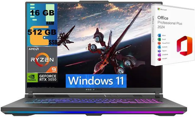 ASUS ROG Strix G18 Gaming Laptop, 18" FHD+ 144Hz, AMD Ryzen 9 8940HX 16 Cores Processor, NVIDIA GeForce RTX 5050 8GB GDDR7, 16GB DDR5 512GB PCIe SSD, Wi-Fi 6E, Windows 11 ,Office 2024 License