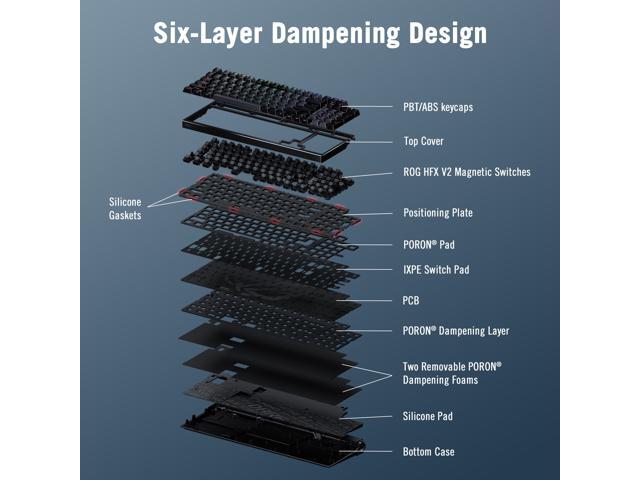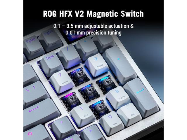 - Hot-swappable ROG HFX V2 magnetic switches: Refined keystrokes with customizable 0.1 - 3.5mm actuation and 0.01mm-step precise tuning