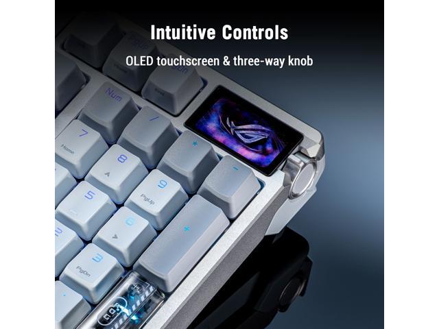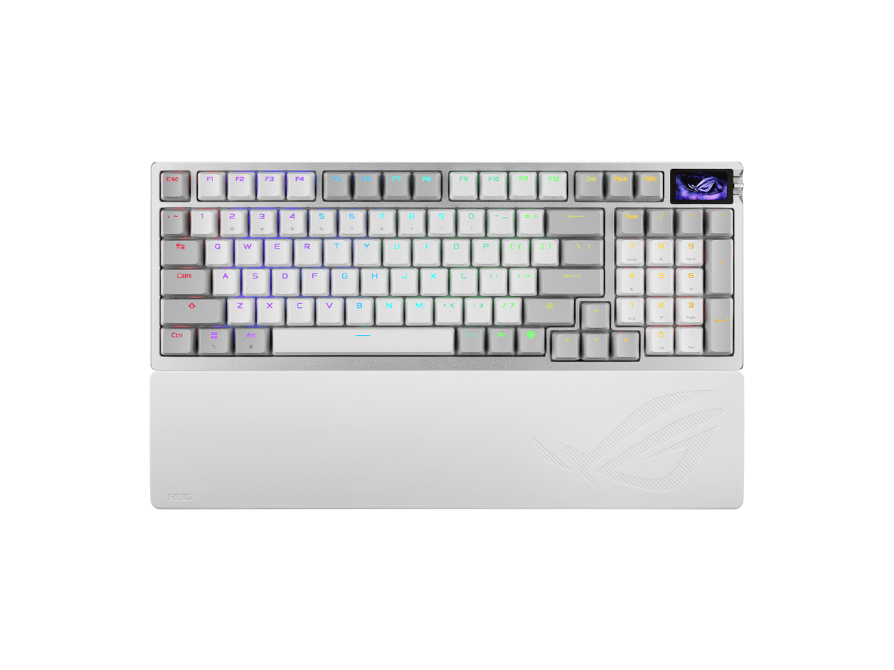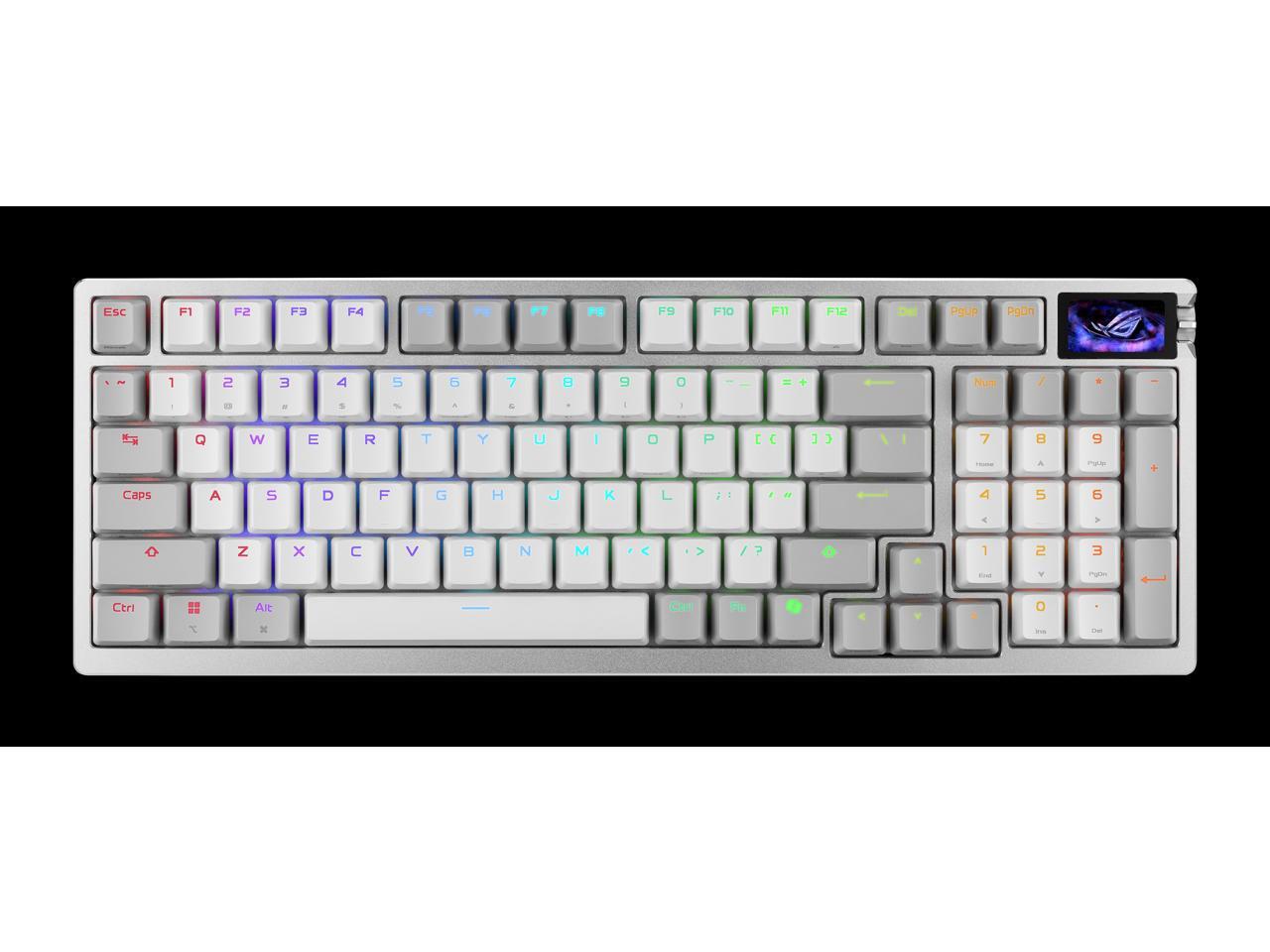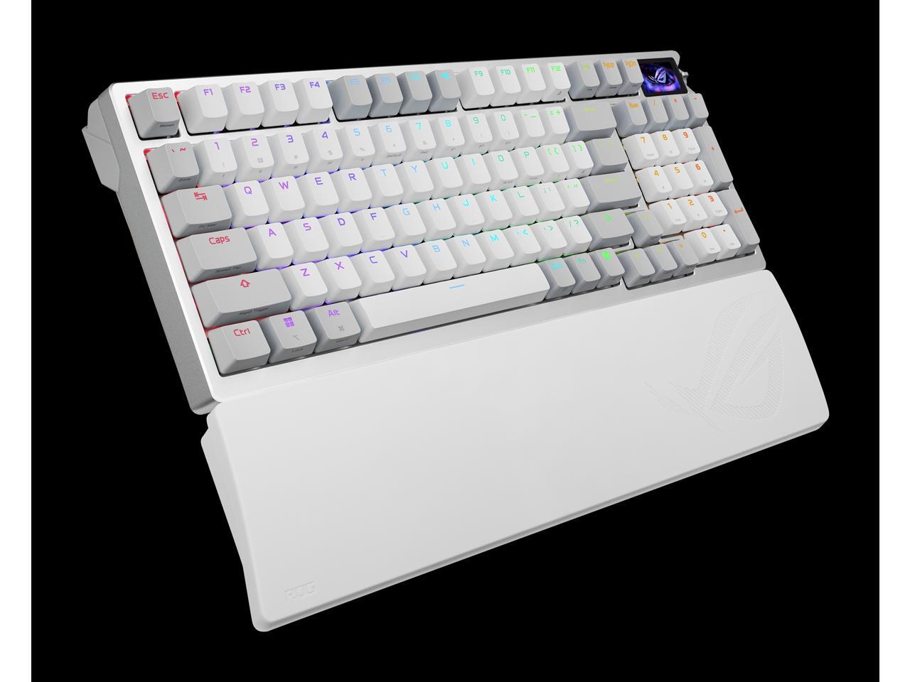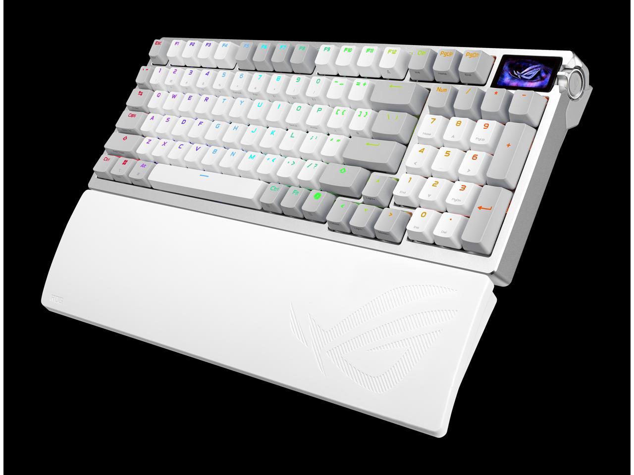 ASUS ROG Azoth 96 HE Wireless Hall Effect Gaming Keyboard 96% Full-Size, Tri-Mode, Hot Swappable Magnetic Switch, Rapid Trigger, Speed Tap, 8K Hz Polling, Color OLED Screen, PBT Keycaps, White