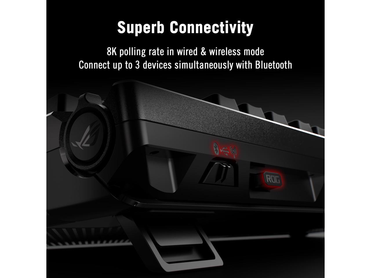 - Superb connectivity: ROG SpeedNova 8K wireless technology, wired USB, and Bluetooth connectivity support up to five devices simultaneously; wired and wireless modes offer up to 8K polling rate
