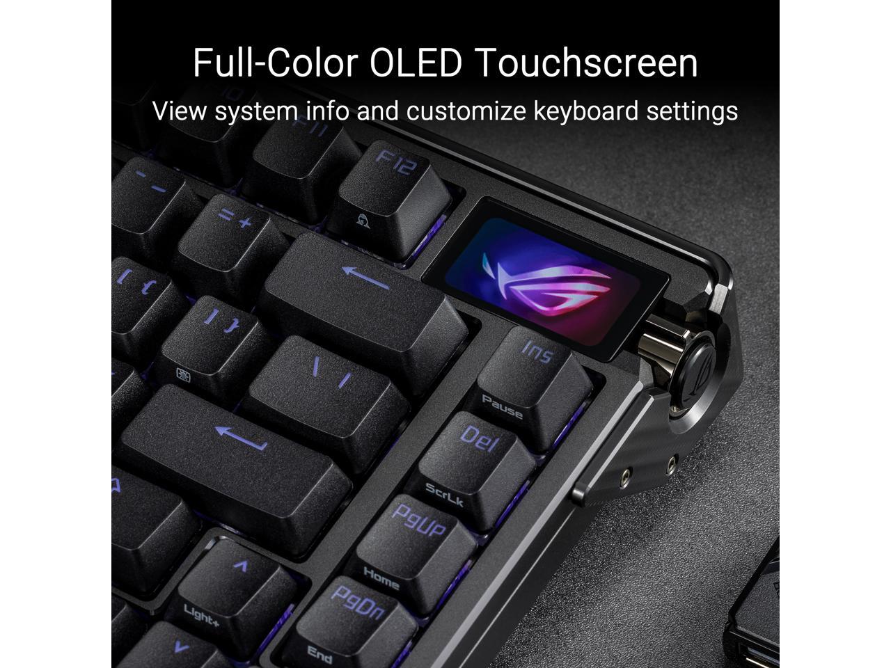 ASUS ROG Azoth Extreme 75 Custom Gaming Keyboard, Aluminum Chassis, Carbon Fiber Positioning Plate, Adjustable Gasket Mount, 3-Layer Dampening, Color OLED Touchscreen, ROG NX Snow Switches, PBT Keycaps