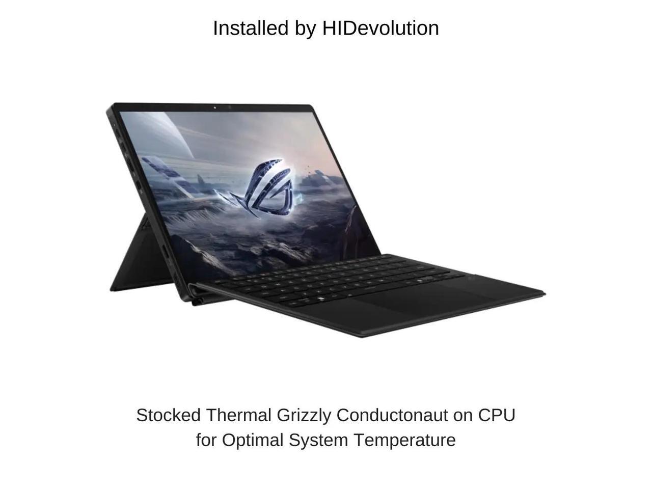 - HIDevolution upgrades the 13.4" 2.5K (2560 x 1600, WQXGA) 180Hz IPS-level, Touch Screen Gaming Laptop with stocked Thermal Grizzly Conductonaut on CPU by adding Gelid GC Extreme on GPU for improved performance and optimal system temperature