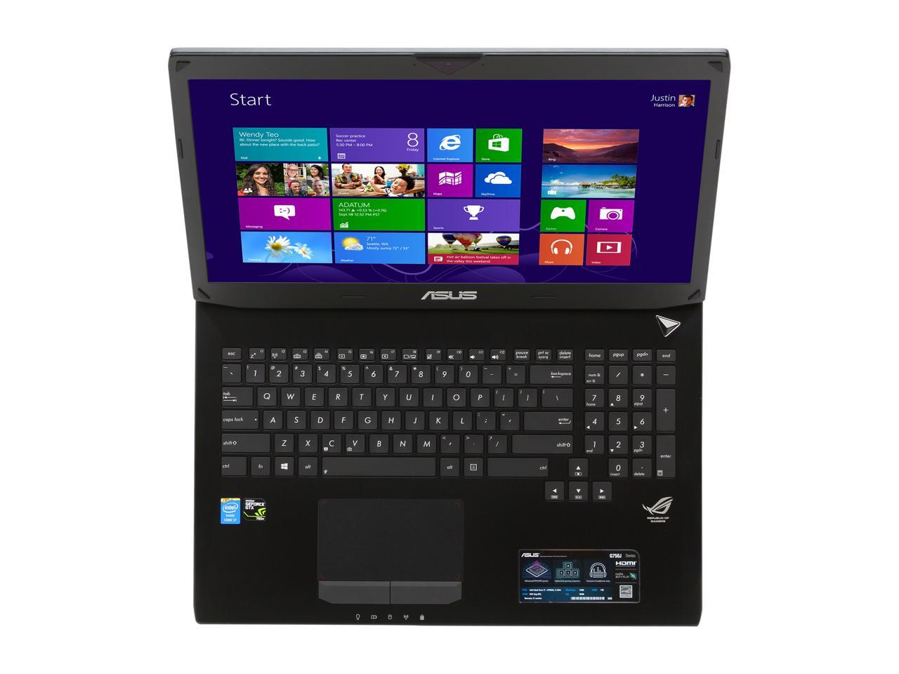 ASUS ROG G750 Series G750JW-DB71 Laptop Intel Core i7 4700HQ (2.40GHz) 12GB Memory 1TB HDD NVIDIA GeForce GTX 765M 2GB GDDR5 17.3" Windows 8 64-Bit