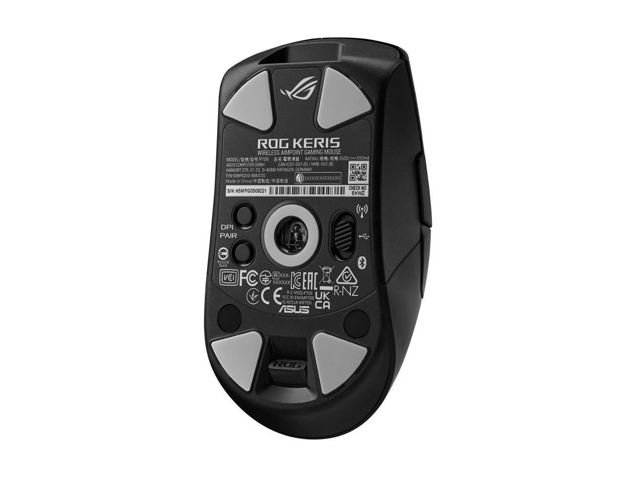 Asus ROG Keris Wireless AimPoint Gaming Mouse, Tri-mode connectivity (2.4GHz RF, Bluetooth, Wired), 36000 DPI sensor, 5 programmable buttons, ROG SpeedNova, Replaceable switches, Paracord cable, Black