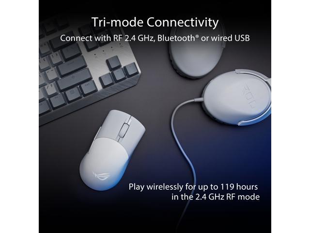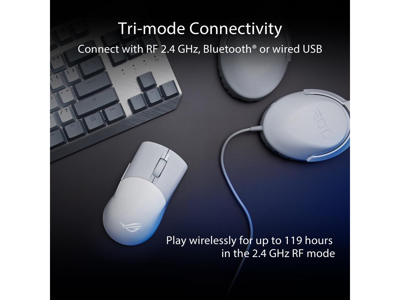 Asus ROG Keris Wireless AimPoint Gaming Mouse, Tri-mode connectivity (2.4GHz RF, Bluetooth, Wired), 36000 DPI sensor, 5 programmable buttons, ROG SpeedNova, Replaceable switches, Paracord cable, White