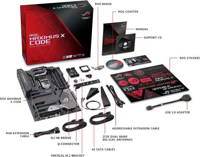 ROG Exclusive Features: Clear CMOS button ROG Armor ROG RAMCache II ROG CPU-Z ROG CloneDrive Pre-mounted I/O Shield MemOK! Button Slow Mode Overwolf ReTry Button Safe Boot Button Start Button Reset Button LN2 Mode GameFirst IV Extreme Engine Digi+: - MicroFine Alloy Chokes - NexFET Power Block MOSFET - 10K Black Metallic Capacitors KeyBot II - X.M.P. - ClrCMOS - Power On UEFI BIOS features: - O.C. Profile - Tweakers' Paradise - ROG SSD Secure Erase - Graphic Card Information Preview ROG RAMDisk Extreme Tweaker USB BIOS Flashback