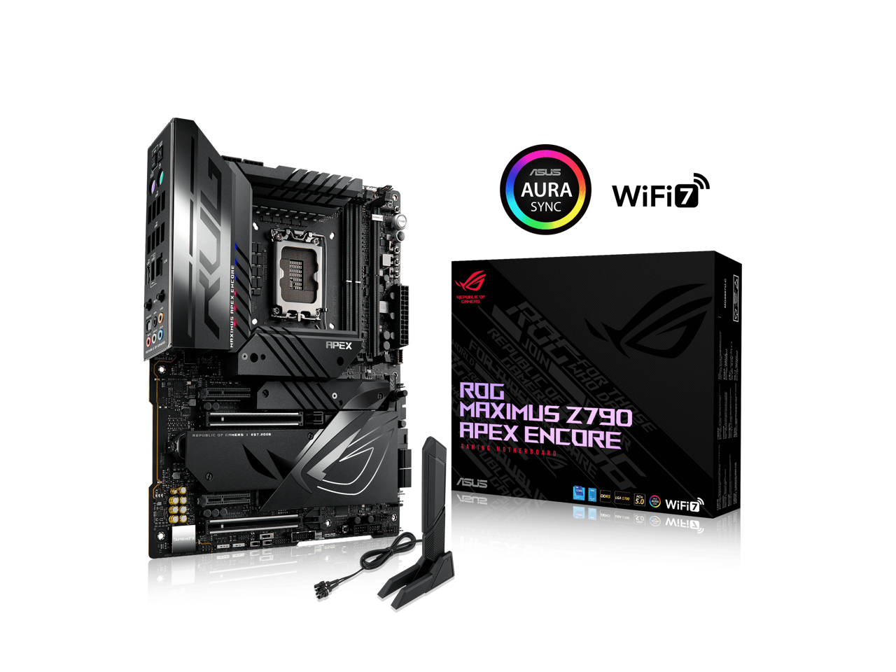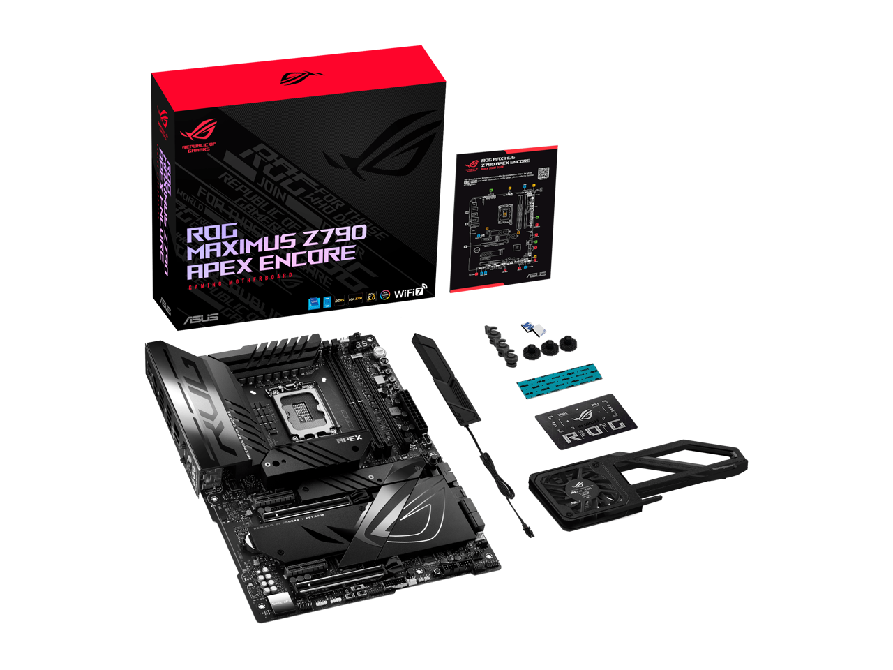 ASUS ROG MAXIMUS Z790 APEX ENCORE LGA 1700(Intel 14th&13th&12th Gen) ATX Gaming Motherboard (24+0+2 power stages, DDR5 support, Wi-Fi 7 with ASUS WiFi Q-Antenna, 5xM.2 slots, PCIe 5.0 NVMe SSD Slot, PCIe 5.0 x16 SafeSlots)